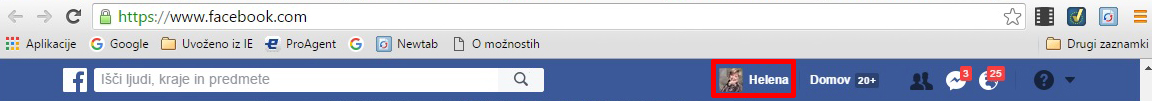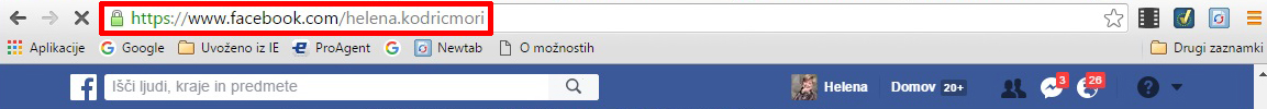 U glavnom pretraživaču selektujte i kopirajte (CTRL+C) adresu profila.